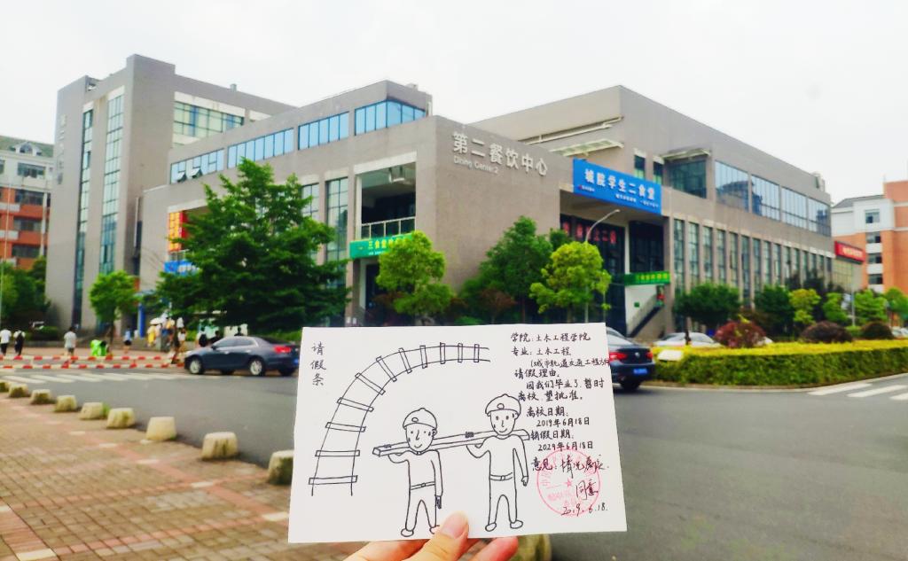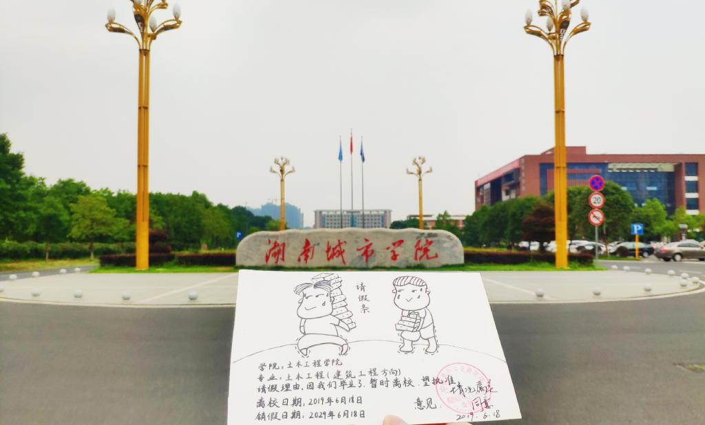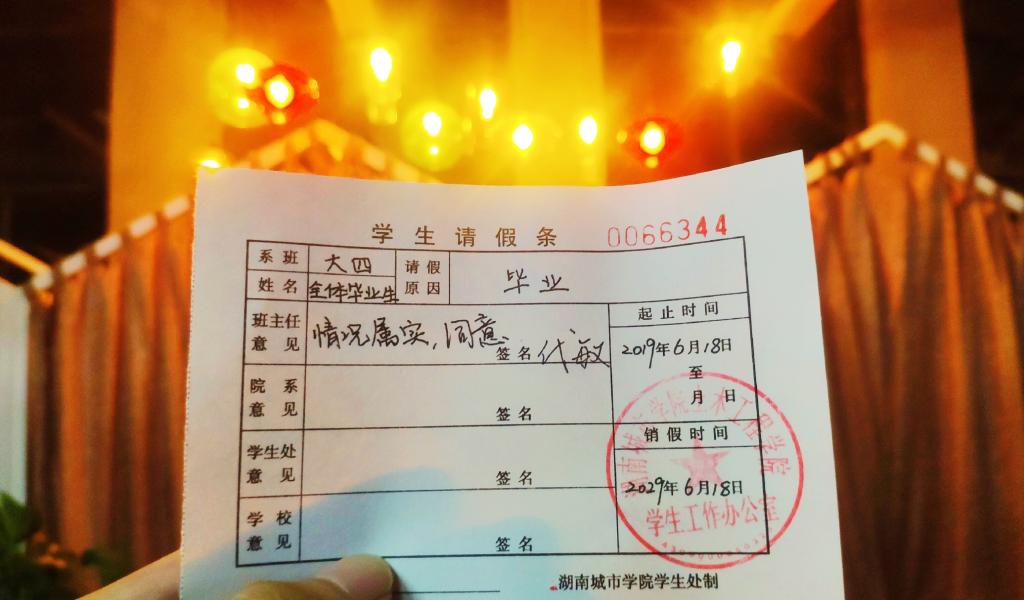 为了让湖南城市学院自慰少妇久久9919届毕业生留下自己独特的青春印记,湖南城市学院自慰少妇久久99团委、学生会为自慰少妇久久99每个专业制作了一批具有专业特色和校园情怀的请假条,请假条上写着请假的时间为十年,代表着毕业生们与母校的十年之约。