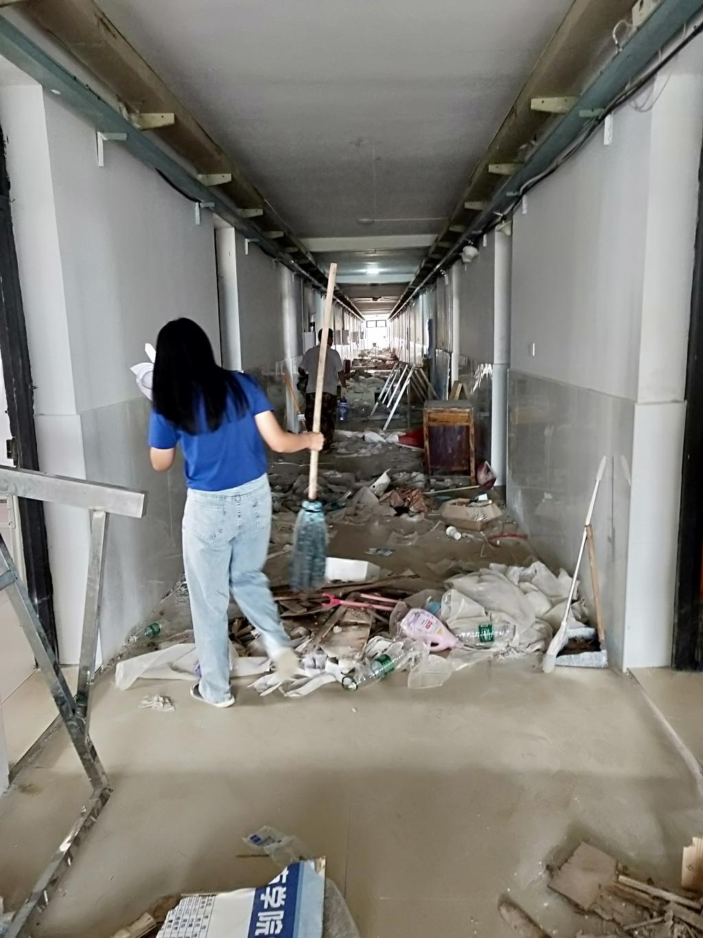 8月31日,土木院的学生干部被分配成几个小组,小组成员们拿着扫把、抹布分别前往各自负责的新生寝室进行打扫。从打扫卫生间到擦洗墙壁,同学们不放过任何死角,仔细认真地将垃圾清除干净。遇到很难清理的污垢,同学们耐心地一点一点铲除,充分发挥了不怕累、不怕脏、不怕苦的奉献精神。经过同学们的辛勤劳动,寝室的环境变得干净整洁,面貌焕然一新。同学们将寝室打扫干净后,仔细查看了寝室家具、水管及寝室通电情况,将寝室出现的问题及时上报给相关部门,并将寝室人员信息表贴在宿舍门口,从而让新生了解信息方便入住。