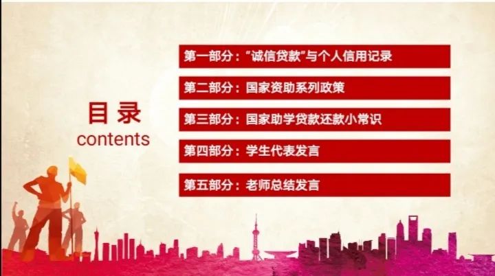 会议伊始,主持人带领同学们学习了《致全省国家助学贷款毕业生的公开信》,信中表达了对毕业生践诺守信的希冀。随后,主持人播放了如何进行贷款的短视频,视频中介绍了正常还款、提前还款、逾期还款三种方式以及具体流程。紧接着,主持人详细介绍了国家资助系列政策,并由办公室干事崔晓然向同学们介绍国家助学贷款的小常识。自慰少妇久久9918届学生会主席李志冬作为助学贷款毕业生代表发言,号召同学们养成诚实守信的优良品质,积极进取,同时表达了对国家助学贷款的感恩之心。