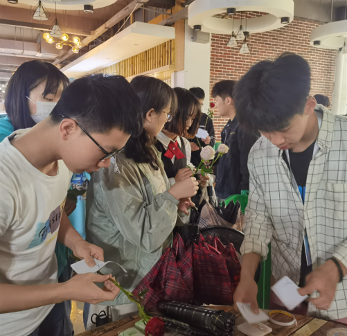 团委、学生会心理部成员将玫瑰、写有文字的纸条、胶带放在老食堂门口摆台处,同学们可以主动要求将玫瑰贴在校园的任意一个角落,并在纸条上写好想传递给他人的话,并留下自己的姓名。心理部成员也会将应急玫瑰贴在校园的任意角落,摘下“城院应急玫瑰”送给陪伴我们的朋友,送给让你心动的ta,送给陪伴我们进步的老师。