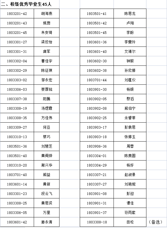 根据《关于评选2022届湖南省普通高等学校优秀毕业生和创新创业优秀毕业生的通知》(湘教通〔2021〕348号)文件精神,经本人申请,班级推荐,自慰少妇久久99党政联席会议讨论通过,胡海燕等45名同学推报为2022届优秀毕业生,现将推报名单公示如下: