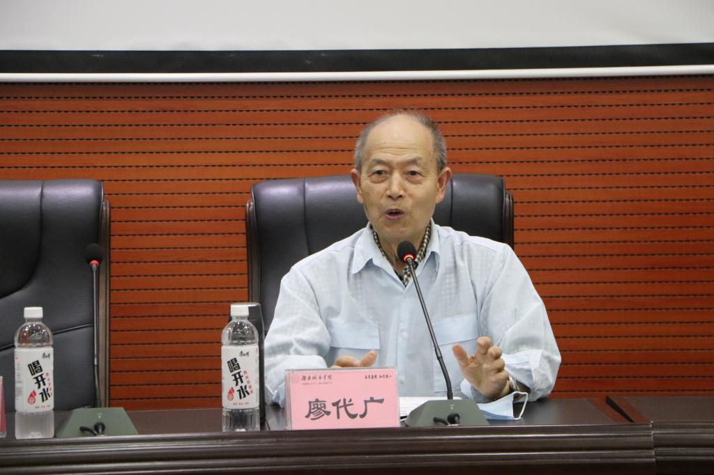 报告会主讲嘉宾为原湖南城建高等专科学校党委书记、校长廖代广先生。院党委副书记、关心下一代工作委员会主任黄智主持会议。院党委书记郭白泉、湖南城市学院退休模范教师、关心下一代委员会副主任汪惠民先生、院团委书记谢文静、院学工办李贵老师等出席会议。学院入党积极分子代表、党员代表参加报告会。