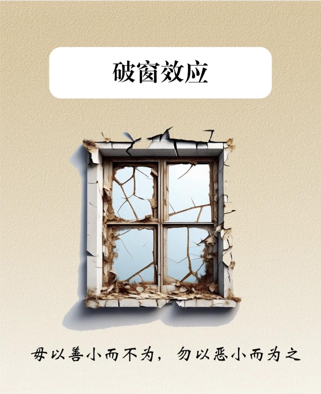 应对破窗效应的策略:提高人们的自律意识:要避免破窗效应,还需要提高人们的自律意识。人们应当自觉遵守法律法规,养成良好的行为习惯,不参与不良行为。营造良好的环境:要消除破窗效应,还需要营造良好的环境。这包括优化社会环境、校园环境和工作环境,让人们在一个良好的环境中生活和工作,从而减少不良行为的发生。