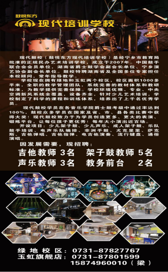 【招聘岗位】钢琴教师10名,古筝教师5名,声乐教师2名,吉他教师2名。
