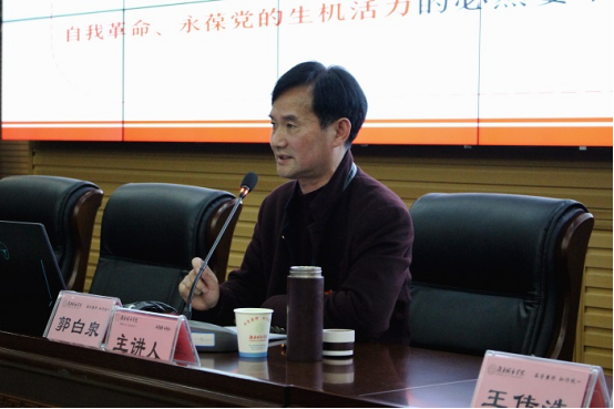 学院党委书记郭白泉作动员报告并主讲了专题党课。