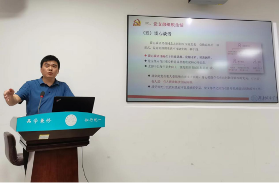为提质学院基层党建、提升党务骨干队伍总体素质,增强开展示范创建和党建创优的政治自觉、思想自觉与行动自觉,2022年5月8日晚,院党委在土木楼722会议室组织举办“党支部工作实务”专题培训,特邀请学校党委组织部副部长孙智坤主讲。院党委书记郭白泉主持专题培训,学院党委委员、党支部书记和教工党支部支委委员40余人参加培训。