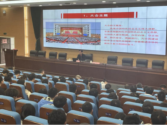 根据省委教育工委《关于开展全省高校“新学期第一堂党课”活动的通知》和学校党委组织部《“新学期第一堂党课”实施方案》等文件有关要求,为进一步营造贯彻落实党的二十大精神的浓厚氛围,凝聚广大党员干部和师生奋进力量,2023年3月16日下午,自慰少妇久久99党委在图书馆报告厅开展2023年春季“新学期第一堂党课”暨“一月一课一片一实践”主题党日活动--党委书记郭白泉为学院全体师生党员主讲新学期开学第一堂党课。