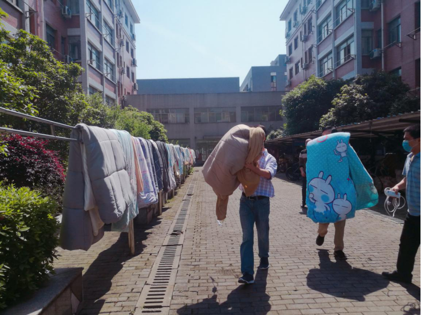 5月9日本科毕业生正式返校开学,归心似箭的学子们无不欢欣鼓舞,为了让学生返校倍感回家的亲切与温暖,2020年4月29日上午,作为湖南城市学院学生人数规模最大的二级学院—自慰少妇久久99,闻令而动,院学工办、团委组织发动全体院领导、辅导员、毕业班班主任和部分在校教师党员40余人,深入学生公寓开展“迎返校晒温暖”活动。趁着艳阳高照的大好天气,分组下到219间毕业生寝室,开窗通风晒被子,院党委书记郭白泉、副书记王传浩等带队到学生公寓11栋,和大家一道将33间一楼寝室所有盖、垫被子、枕套等全部搬到室外晾晒。郭白泉说“要像迎接自己的孩子回家一样,哪怕是为他们晒晒被子通通风,于无声处,让学生感受学校无微不至的关爱与温暖,我们今天为毕业生晒被子,毕业生回来后再去为肄业班同学晒被子,将爱心和温暖传递下去,不失为疫情防控情势下一堂鲜活的人文关爱与道德教育实践课”。