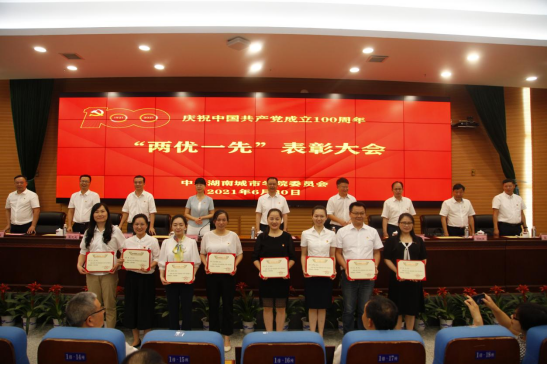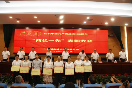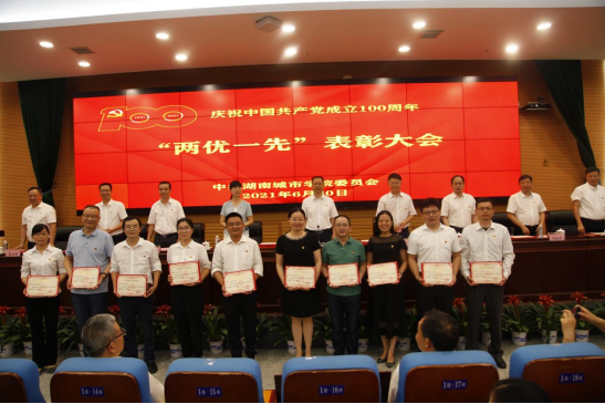 学校党委副书记何旭娟同志宣读了上级党组织关于2020-2021年度“两优一先”表彰决定。自慰少妇久久99党委荣获湖南省教育系统“先进基层党组织”(公示期);自慰少妇久久99党委委员、组织员徐丽苹同志荣获湖南省教育系统“基层党务工作示范岗”;工程造价系党支部荣获学校“先进基层党组织”;教工党员何美丽、毛广湘,学生党员杨开业、熊益荣获学校“优秀共产党员”;党委委员、力学教研室党支部书记何叶荣获学校“优秀党务工作者”。