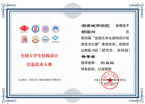 2022年5月16日,第四届“全国大学生结构设计信息技术大赛”正式获奖名单公布,我院刘益红老师指导的胡国兴同学荣获A组特等奖,谢金老师指导的安全工程专业李勇、龚展弘、杨丽雯团队荣获三等奖。