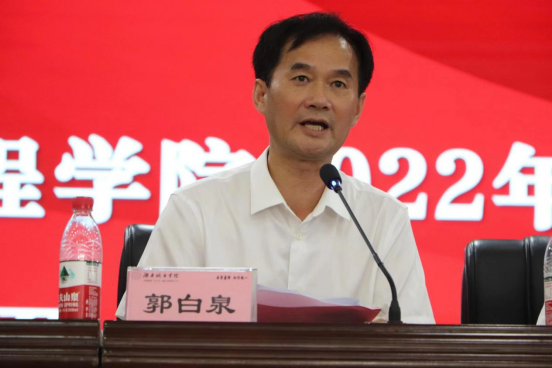 党委书记郭白泉向2022级全体新同学发出号召:在中华民族全面开启建设社会主义现代化强国新征程第二个百年奋斗目标的历史交汇点上,在湖南城市学院奋进“十四五”、开启“申博”“升大”新征程的关键时刻,希望同学们不负时代、不负韶华、不负梦想、不负父母亲人的殷殷期盼,牢记“请党放心、强国有我”的青春誓词,以“闯”的劲头、以“创”的精神、以“干”的作风,健康成长,历练成才,用智慧和汗水书写属于新时代青年大学生精彩而充实的大学华章!