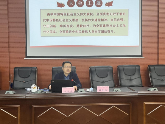 2022年12月9日上午,学校党委委员、副校长袁志成在土木楼828报告厅作党的二十大精神宣讲辅导报告。学院理论学习中心组成员、全体师生党员、部分入党积极分子参加宣讲会。宣讲会由院党委书记郭白泉主持。