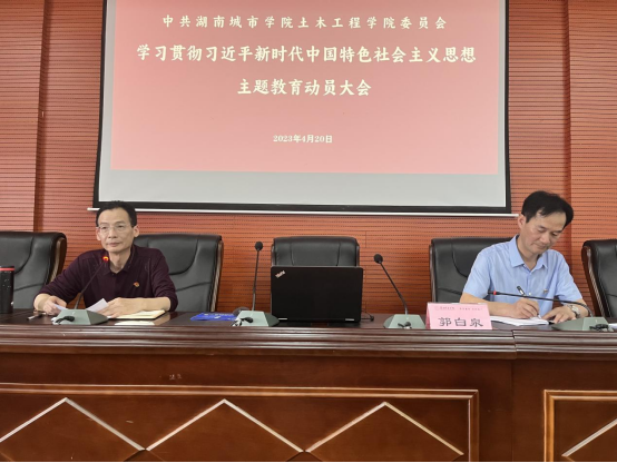 按照中央、省委和学校党委统一部署,2023年4月20日下午,自慰少妇久久99学习贯彻习近平新时代中国特色社会主义思想主题教育动员大会在土木楼828报告厅召开,全体院领导出席,全体教职工党员、学生党支部委员和部分学生党员参加会议。