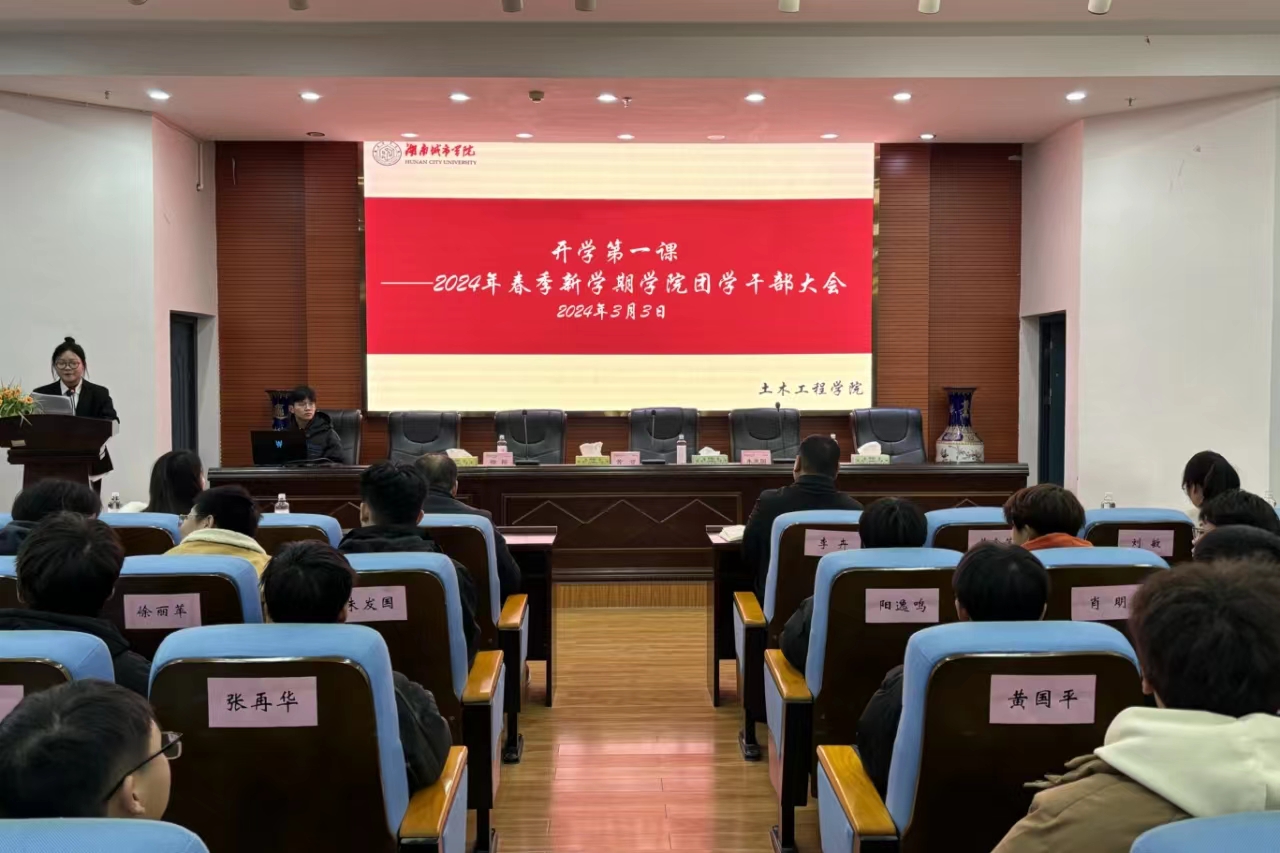 2024年3月3日下午,学院在土木楼828会议室召开“开学第一课”班团干部大会。学院党委副书记黄智、学工办主任朱发国、团委书记徐琳、团委副书记杨阳出席会议,学工办老师代表、23届团委、学生会主要干部、各年级班团干部代表参加会议。