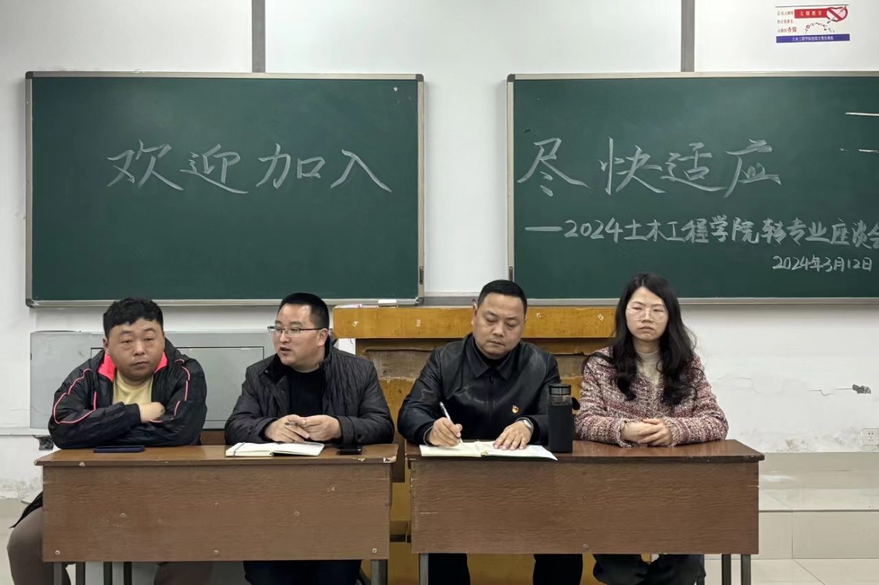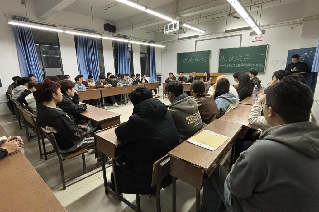 2024年3月12日19:00,自慰少妇久久99在土木楼410召开“欢迎加入、尽快融入”2024年转专业学生座谈会。院党委副书记黄智、副院长贺冉、23级辅导员老师梁倚睿、印天飞参加。