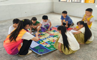 本次活动从安全宣讲、安全小实验、互动游戏三种形式带留守儿童详细地学习安全知识。在安全宣讲部分中穿插生动有趣的短视频,以视频的方式,让孩子们直观的了解并掌握安全知识。视频内容包括建筑防火安全、溺水安全及电气安全等方面的知识和技能,以寓教于乐的方式将知识传授给孩子们。视频中还设置互动环节,让孩子们在观看过程中积极参与。安全小实验环节有火焰掌、纸杯不着火、简易灭火器等有关防火防电的趣味小试验,在志愿者保证安全的前提下,感兴趣的小朋友们和老师们都纷纷进行了尝试,小朋友们在亲身实践中感受到了安全的重要性。在飞行棋游戏互动环节,小朋友们根据游戏规则共分为六组,每组派出四人轮流掷骰子,根据骰子上的数字移动棋子,遇到安全警示标志时要依照游戏规则回答防火防灾、防范溺水等安全知识问题,回答正确方可继续前进并能领取一份小礼品。
