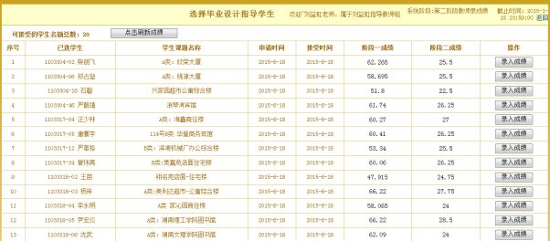 (6)按排班表进教室指导学生,保证指导答疑的时间和效果。对学生严格要求,加强考勤,把握学生动向。定期主动按进度计划对学生的毕业设计(论文)进行检查,发现问题及时解决。认真填写《毕业设计质量监控手册》,及时上报阶段指导成绩。