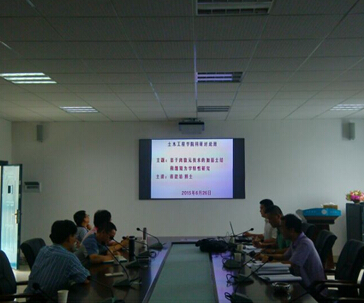 经过激烈的讨论后,蒋博士开始介绍加筋红砂岩粗粒土细观力学特性研究的详细情况,其中重点讲了格宾网加筋土大三轴试验概况。同时他用图片展示了多种模型,还现场用计算机模拟了红砂岩的一些受力情况,讨论班成员都听的非常认真,中间还不断提出疑问和给出意见,现场气氛非常热烈。