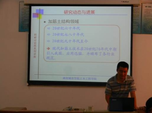 6月26日下午,岩土、地下工程科研讨论班在岩土教研室举行学术研讨活动。活动围绕“格宾网加筋土挡墙的关键技术研究”展开,由蒋建清来时主讲。