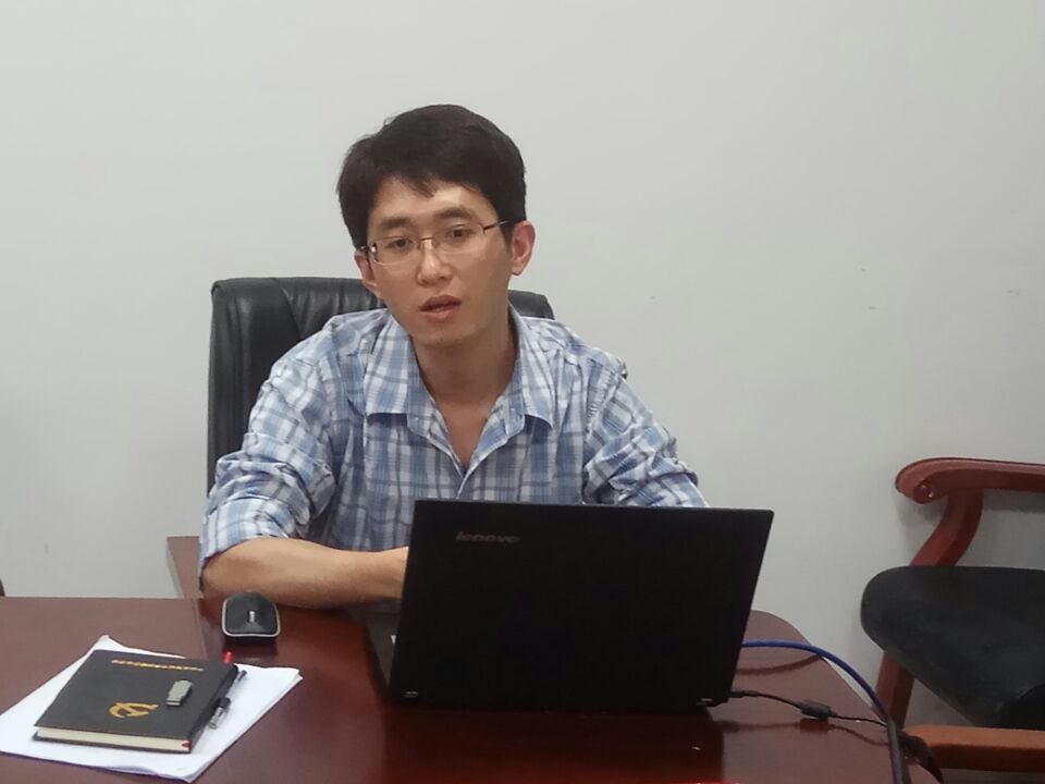 道路与交通工程系主任李苗博士在汇报土木工程专业道路与桥梁工程方向人才培养方案的前期修订情况