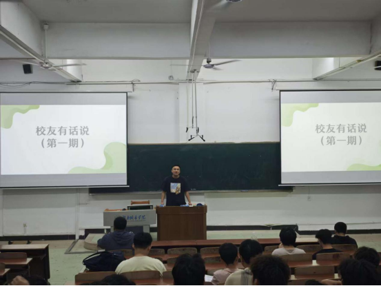 2025年5月24日晚,湖南城市学院自慰少妇久久99本学期推出的“校友有话说”系列活动第一期在第一教学楼102教室正式开讲。本次活动特邀2020级优秀毕业生杨刘杰担任主讲嘉宾,为在校学生带来关于选调生备考、基层工作体验及职业规划的精彩分享。活动吸引了百余名学生参与,现场互动热烈。