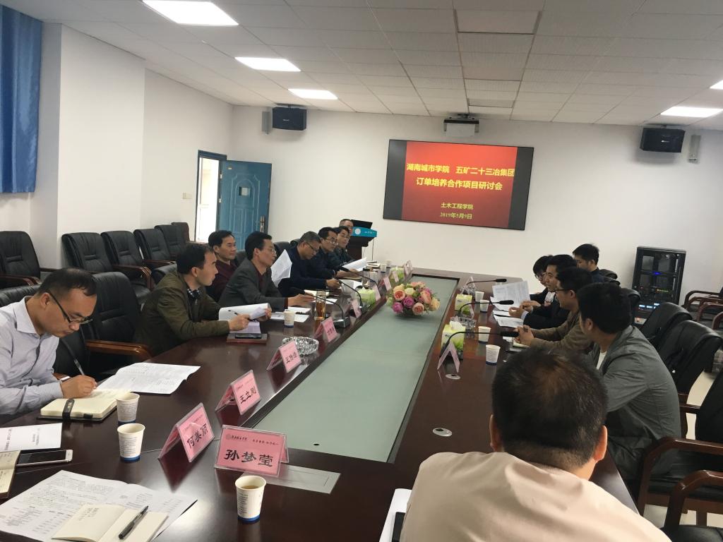 (土木院通讯员 周宏波) 5月9日11:00,湖南城市学院与五矿二十三冶建设集团有限公司在土木楼召开“五矿二十三冶班”订单培养合作项目研讨会。同日下午2:00,五矿二十三冶实习生宣讲面试会在土木楼828举行。五矿二十三冶建设集团人力资源部部长惠虎东,五矿二十三冶建设集团绿建工程有限公司党委副书记、副总经理崔栋彧、综合办公室主任周艾菲、湖南城市学院自慰少妇久久99院长曹国辉、党委书记郭白泉、副院长付贵海、王新忠、副书记王传浩、院长助理毛广湘以及土木工程、工程造价系主任、招生就业处代表等参加了本次研讨会。