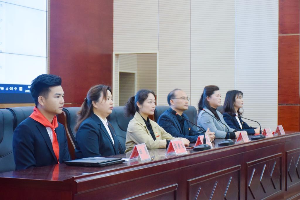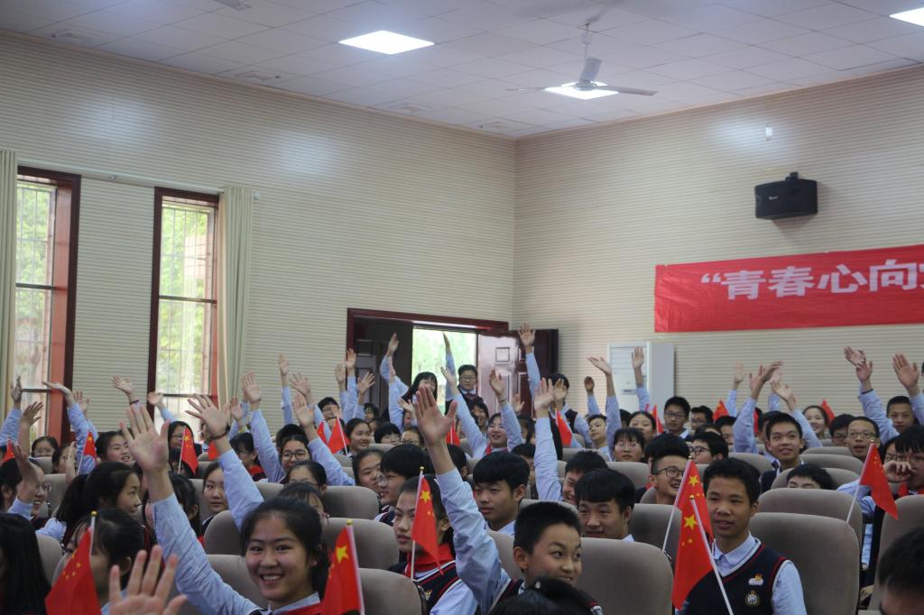 观看完习总书记重要讲话后,“青春心向党·建功新时代”特别主题团日活动在慷慨激昂的国歌声中正式开始。本次活动分为退队入团仪式、学习五四历史与传承五四精神的主题团课、少年说、团章知识竞答五部分。