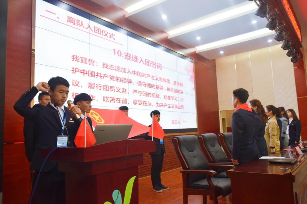 伴随着少年先锋队队歌的奏响,退队入团仪式正式开始。在益阳市赫山万源学校七年级大队辅导员田勇宣布退队队员人数后,退队队员代表进行了主题发言。“走出稚嫩,迈向成熟”,代表在发言中号召全体退队队员端正思想、努力学习、认真工作,以正直、善良、热情、无私的态度积极向团组织靠拢。随后,七年级大队辅导员田勇寄语退队队员。田老师在寄语中讲到,入队、入团、入党是人生路上的里程碑,同学们要牢牢把握自己的人生目标,在团组织的教导与引领下努力提升自己的思想觉悟,做一个有理想、有本领、有担当的新时代青年。随后,全场齐唱团歌,在益阳市赫山万源学校团委副书记刘静宣读新团员名单后,在场的全体领导老师以及自慰少妇久久99团员代表为新入团同学佩戴团徽。在湖南城市学院自慰少妇久久99学生会主席李志冬的带领下,全体新团员在团旗下庄严宣誓。