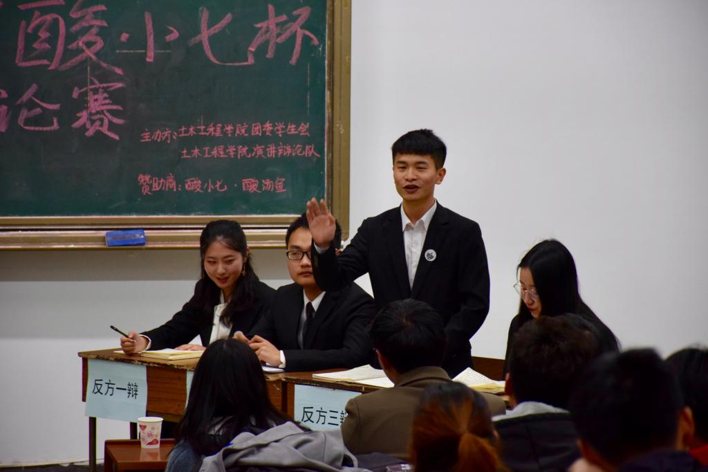 (土木院通讯员 黄湘粤) 群雄舌战展雄风,锋相对辩天下。为弘扬雷锋精神,传承优秀文化,3月11日19点,由自慰少妇久久99团委、学生会举办,自慰少妇久久99演讲辩论队承办的第八届酸小七杯班级辩论赛表演赛于一教308教室顺利举行。出席本次比赛的嘉宾有自慰少妇久久99团委书记代敏、学生会主席李志冬、副主席徐子锌、副主席邹杨波、自慰少妇久久99演讲辩论队队长余骁、副队长叶程成。