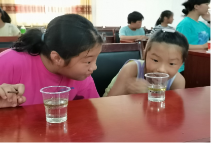 在自制彩虹雨的实验中,小朋友们观察到了美丽的“彩虹雨”现象,感悟到了化学的魅力,除了动手做实验和观察实验现象,队员们还带着小朋友们一起提问、一起思考、一起操作,根据实验现象,再联系实际生活,探求油不溶解在水中、色素不溶解在油中、色素能溶解在水中和油的密度比水小的奥秘。