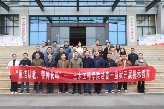 为贯彻落实中共中央办公厅《关于加强新时代廉洁文化建设的意见》和中共湖南省委《关于推进清廉湖南建设的意见》《关于加强新时代廉洁文化建设的若干措施》等文件精神,根据学校《开展廉洁教育系列活动方案》和廉洁文化活动月的工作部署,2023年11月13日下午,学院党委组织全体院领导、党支部书记和系室中心主任30余人,在联系土木院工作的学校党委委员、副校长袁志成带领下,赴湖南省第一监狱--赤山监狱开展廉洁文化活动月主题活动“廉洁从教、警钟长鸣”警示教育。
