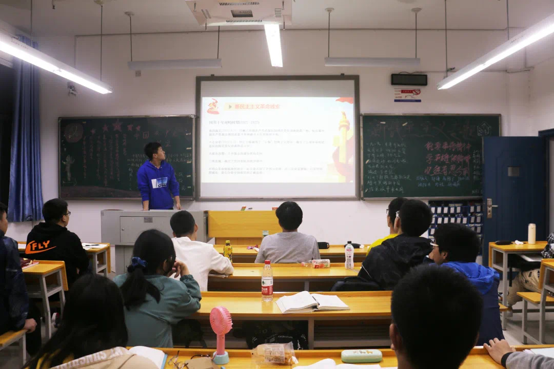 会议伊始,主持人带同学们阅读前言。同学们学习了新民主主义革命的简介以及各个时期新民主主义革命的线索。接着,同学们在主持人的带领下,通过阅读文字资料和观看视频深入了解五四运动、中国共产党的成立、四一二反革命政变、九一八事变以及西安革命事变的内容及经过。