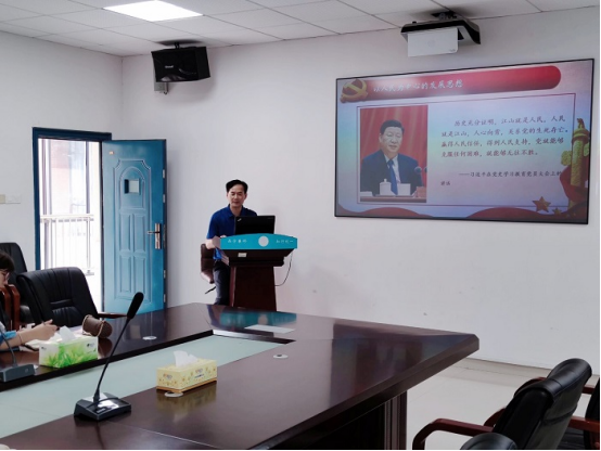 郭白泉主讲党课的题目《中国共产党永远与人民心连心----学习习近平以人民为中心的发展思想和党的矢志为民史》。
