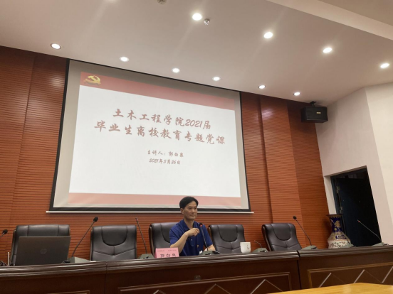 2021年5月26日晚,院党委在土木楼828会议室组织举办2021届毕业生党员离校教育暨专题党课。院党委书记郭白泉、党委委员组织员徐丽苹出席并主讲党课。