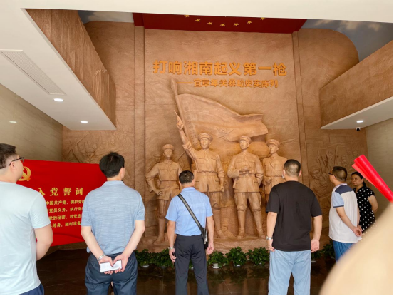 “农奴聚义起宜章,晃晃梭镖刺大天”。大革命失败后,中国共产党人擦干身上血迹、掩埋好同伴遗体,更加坚定革命意志,继续战斗,建立工农武装,武装反对国民党,开辟新的革命道路。1928年1月,朱德、陈毅率南昌起义余部智取宜章县城,发动宜章年关暴动,打响了湘南起义第一枪。星星之火霎时呈燎原之势,湘赣边工农运动风起云涌,仅3个月,就有20多个县相继起义,100多万农民参加武装革命,宜章成为中国工农运动的策源地。中心组成员怀着无比崇敬的心情,先后参观了年关暴动的旧址、纪念馆,认真聆听讲解员的讲解,仔细察看一件件历史文物、资料、图片和影像,重温了入党誓词。穿越近一个世纪的历史时空,大家真切地感受到革命先辈坚定的理想信念、执着的革命追求、敢于牺牲的英雄气概和战胜一切困难顽强斗争的意志品质。