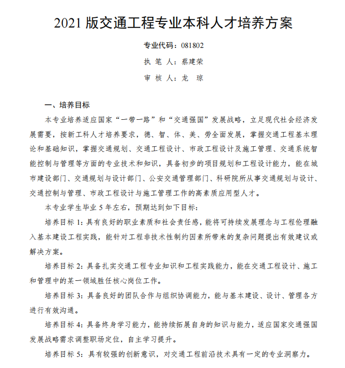 交通工程专业2021版人才培养方案